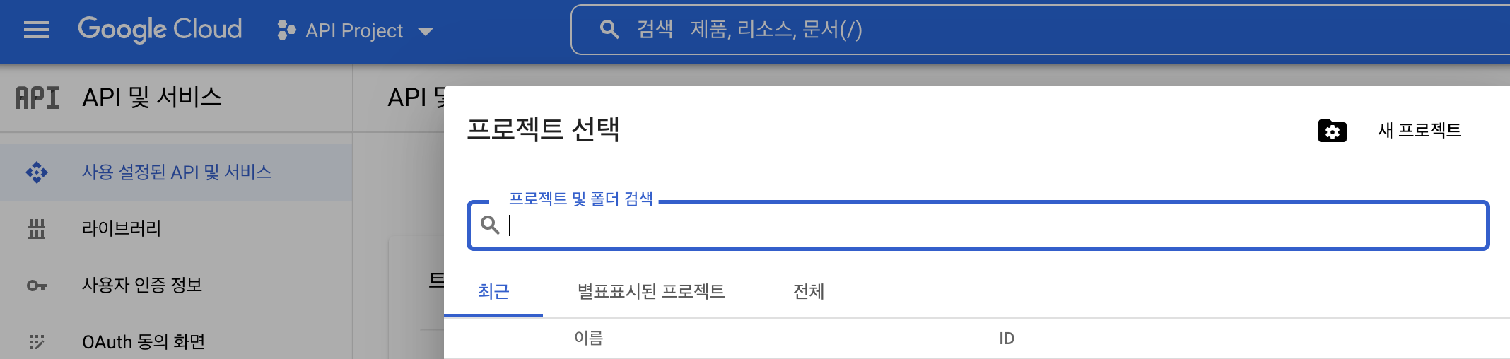 - Google Maps API를 사용하기 위해서는 구글 글라우드 콘솔 내에 프로젝트를 만들어야 한다.