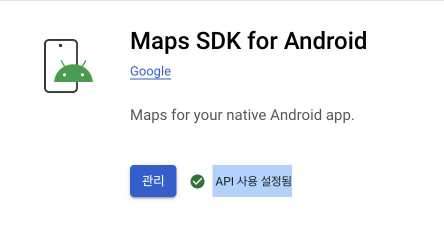 - ' API 사용 설정됨'이라고 변경되면 Google Maps API가 정상적으로 활성화가 된 것이다.