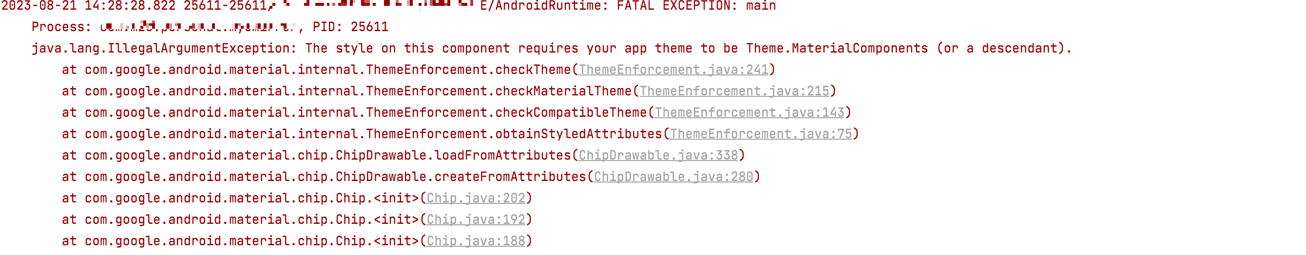 java.lang.IllegalArgumentException: The style on this component requires your app theme to be Theme.MaterialComponents (or a descendant).